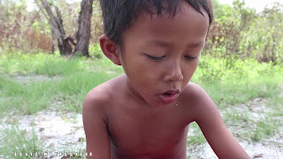 Little child eat worms